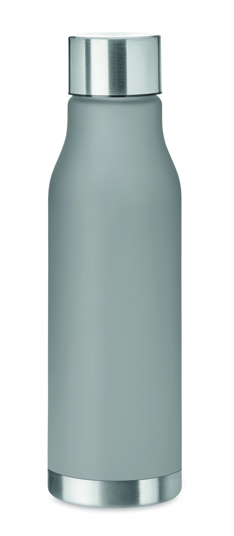 RPET 600 ml juomapullo kumisella pinnalla ja ruostumattomasta teräksestä valmistetulla korkilla. Tuote on BPA ja vuoto vapaa, ei sovellu käytettäväksi hiilihapollisilla nesteille.