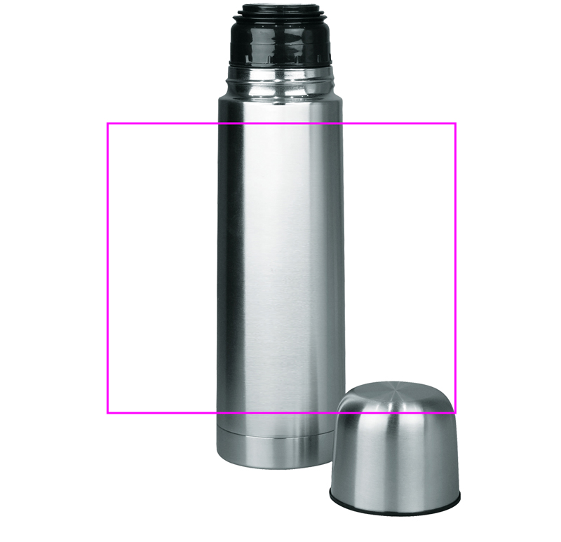 Kaksiseinämäinen ruostumattomasta teräksestä valmistettu eristyspullo 0,5 l. Nepparikiinnitys mahdollistaa nopean kaatamisen kuppiin. Logosi laserkaiverretaan pulloon. Jokainen eristyspullo on pakattu yhteen pahvilaatikkoon.
