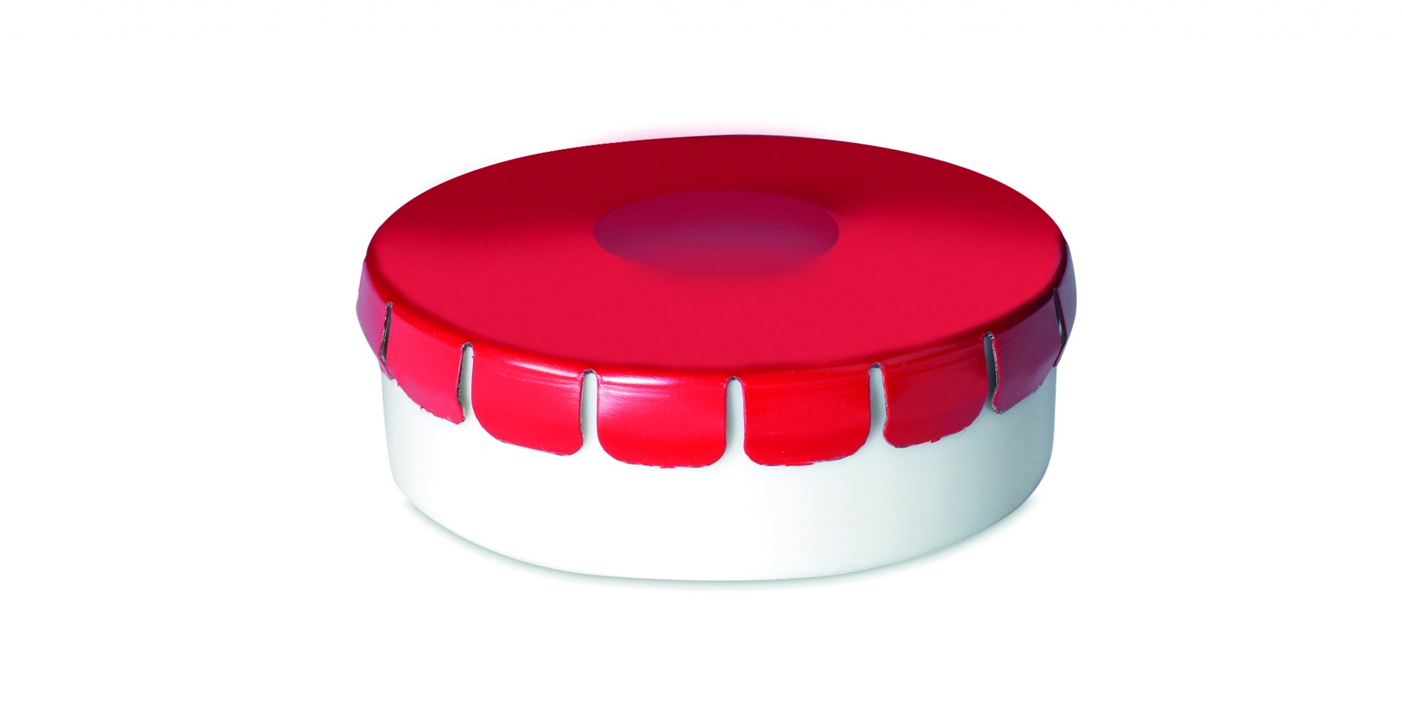 Sokeriton pastilli muovirasiassa, varustettu tinakannella. Helposti painettava avausmekanismi, sisältää 12 grammaa pastilleja.