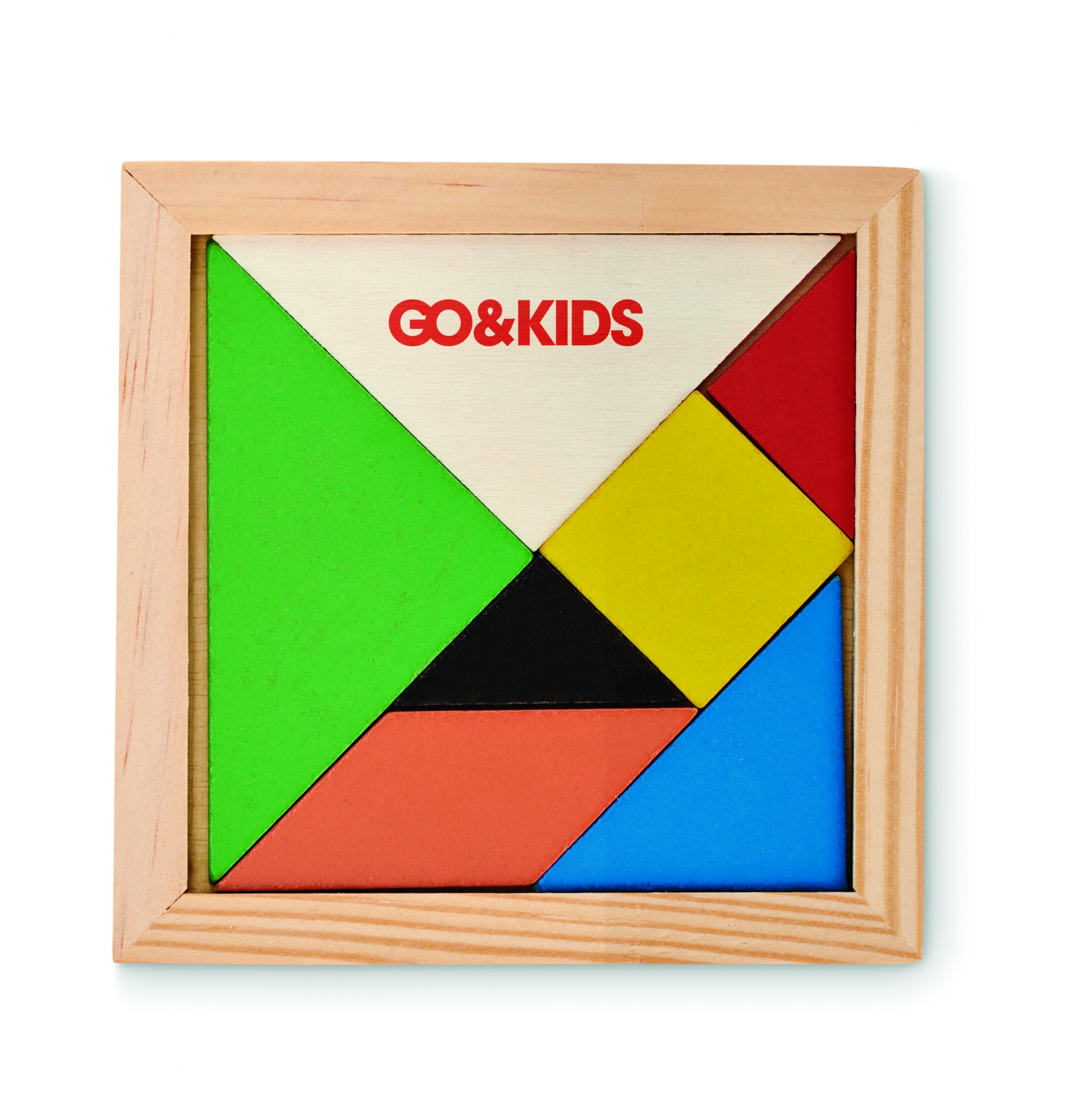 Logo trade mainostuote kuva: Tangram-palapeli puusta