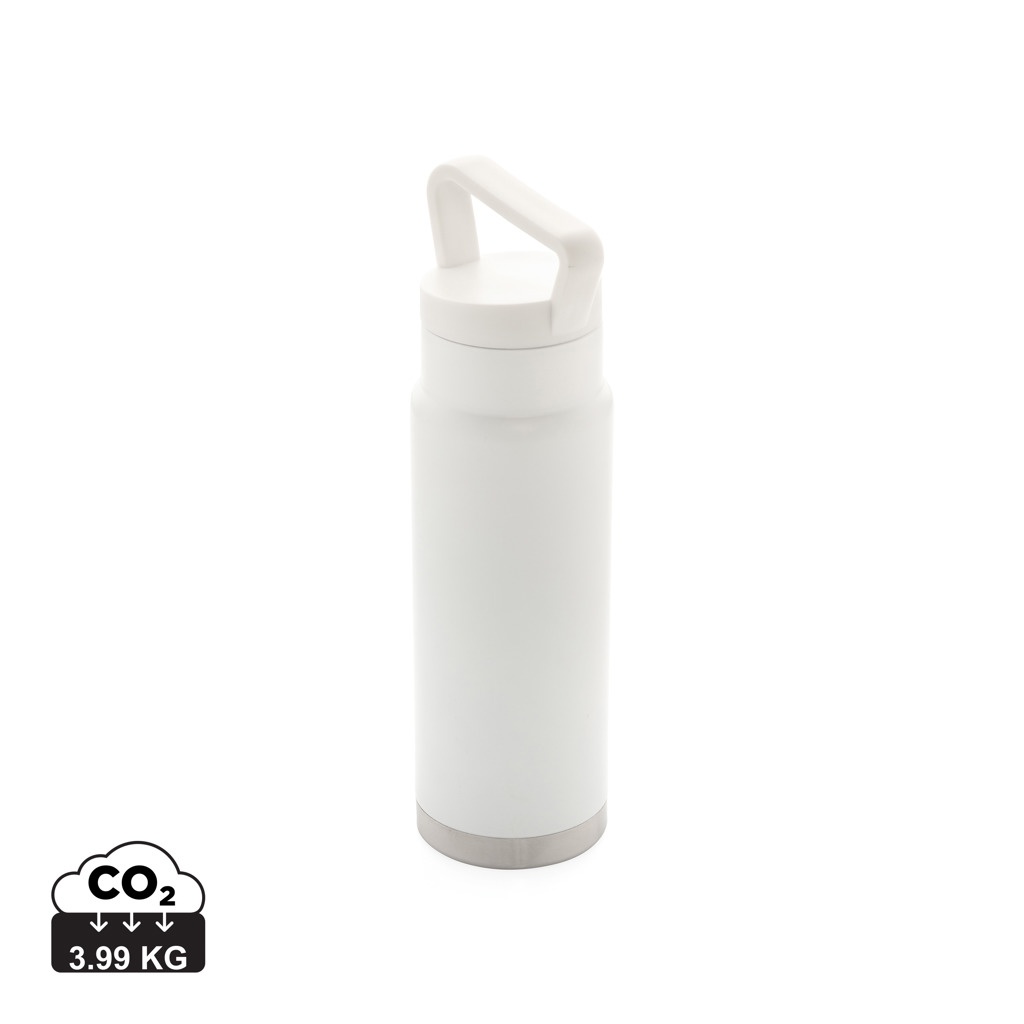 Tiivis tyhjiöpullo kahvalla, valkoinen