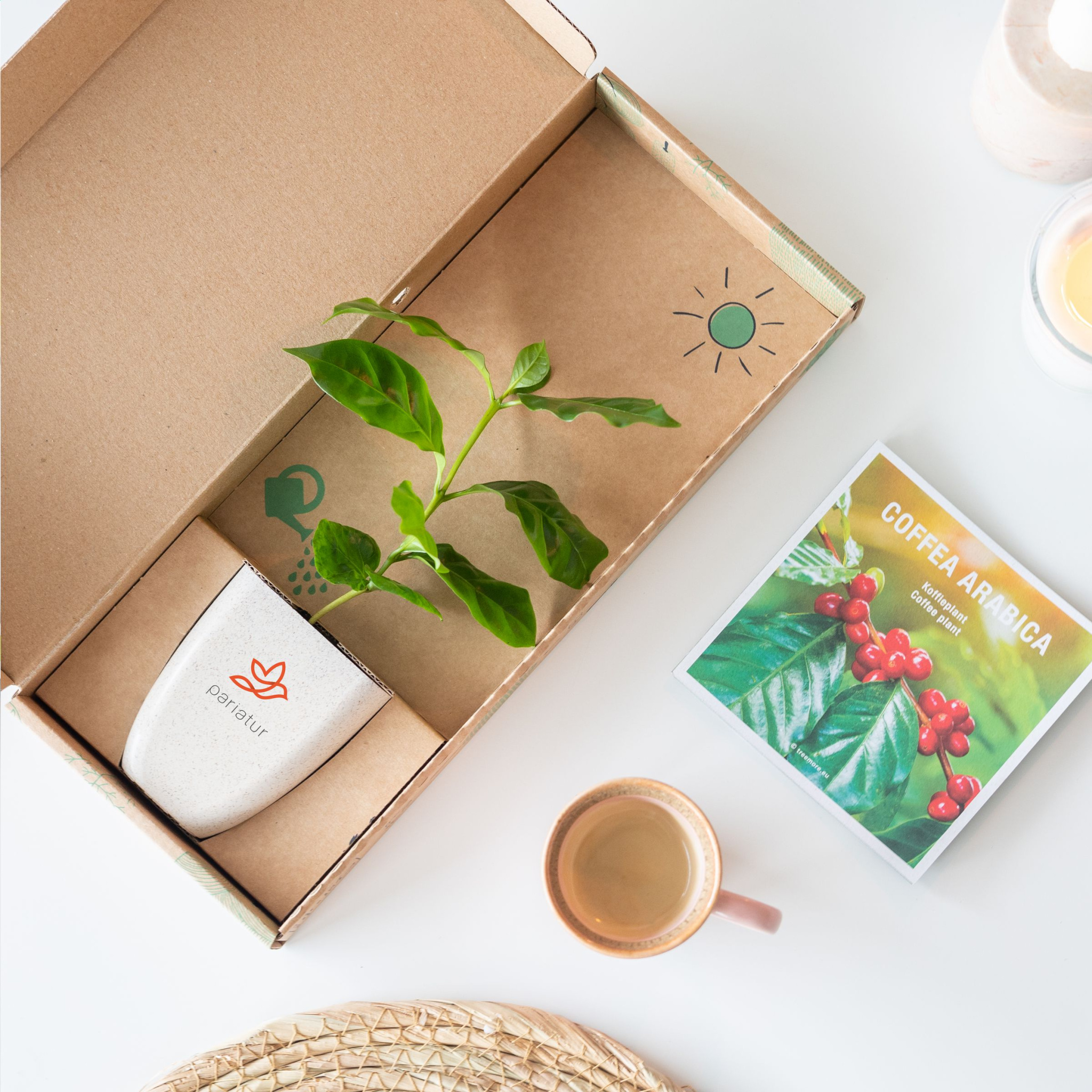 Postilaatikkopuu Treemore-brändiltä: Kahvipuu (Coffea arabica). Tuote, jossa puu on keskipisteessä, jossa jokainen voi huolehtia omasta puustaan kotona sen kasvua seuraten. Puut hankitaan hollantilaisesta taimitarhasta, ja ne toimitetaan kukkaruukussa ja pakkauksessa, joka on erityisesti kehitetty sopimaan postilaatikon läpi. Puu toimitetaan maaperässä ja elefantin ruohokuiduista valmistetussa biopohjaisessa kukkaruukussa. Pakkaus ja mukana toimitettu tietovihko ovat FSC®-sertifioituja ja 100 % kierrätettäviä. Omaperäinen tapa yllättää joku ja samalla tehdä maailmasta hieman vihreämpi.