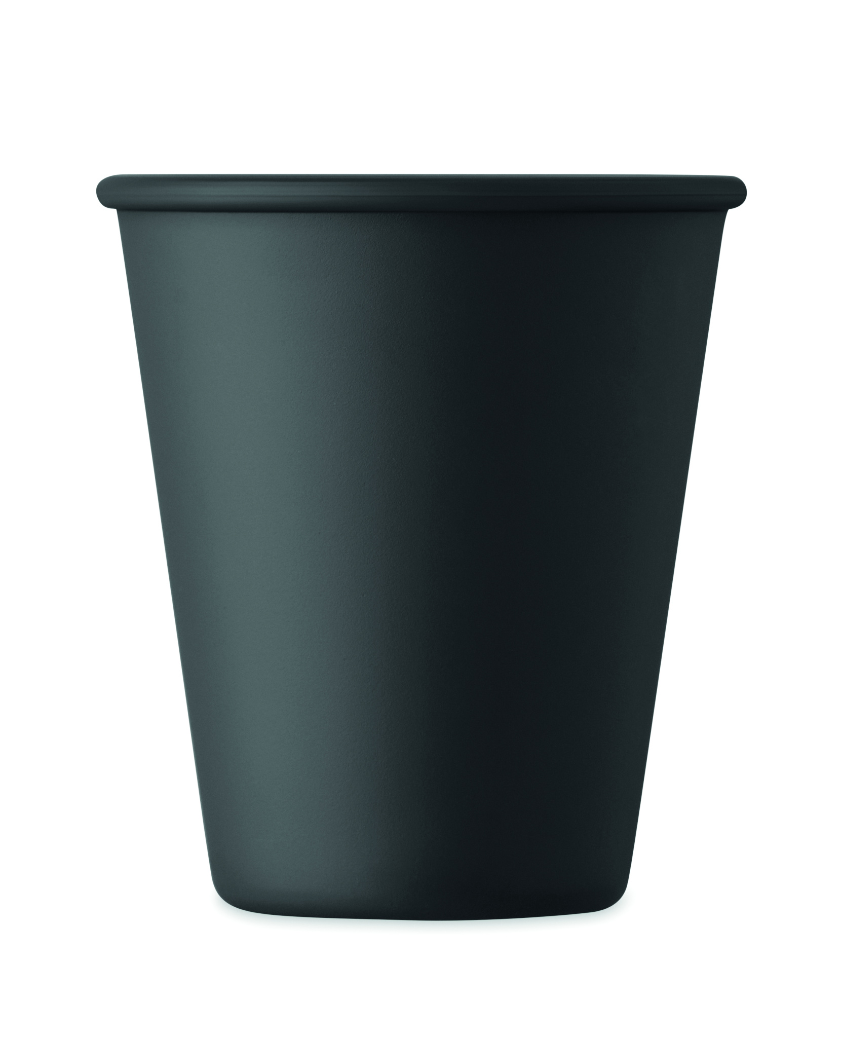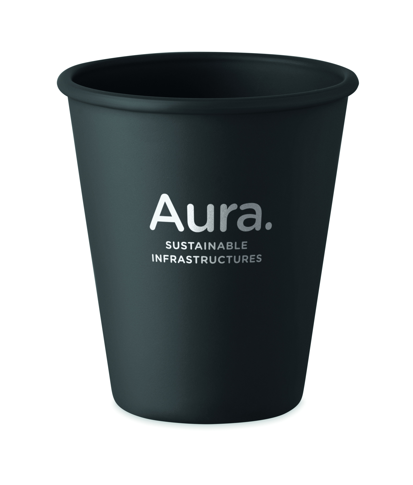 Uudelleenkäytettävä yksiseinäinen muki PLA-maissimuovista. Tilavuus: 200 ml. Koska kyseessä on yksiseinäinen muki, lämmönsiirtoa voi silti tapahtua.