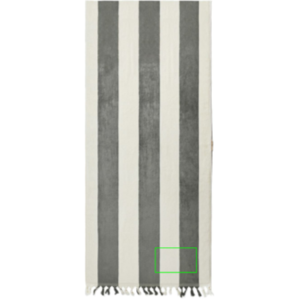 Ylellinen puuvillainen rantapyyhe, jonka toisessa lyhyessä päässä on tupsut ja toisessa päässä lounge-tuolin tasku. Työnnä tasku aurinkotuolin päälle, jotta pyyhe pysyy paikallaan. Rantapyyhkeemme on valmistettu Intiassa puuvillasta, ja niiden paksuus on 450 g/m2. OEKO-TEX®-STANDARDI 100. 09.HIN.68091. Hohenstein HTTI.