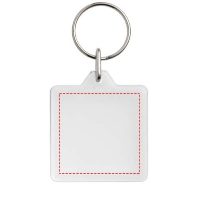 Kirkas neliönmuotoinen U1-avaimenperä, jossa on metallinen avainrengas. Metallirengas tekee profiilista litteän, mikä on ihanteellista postituksen kannalta. Tulosteinsertin mitat: 3,2 cm x 3,2 cm.
