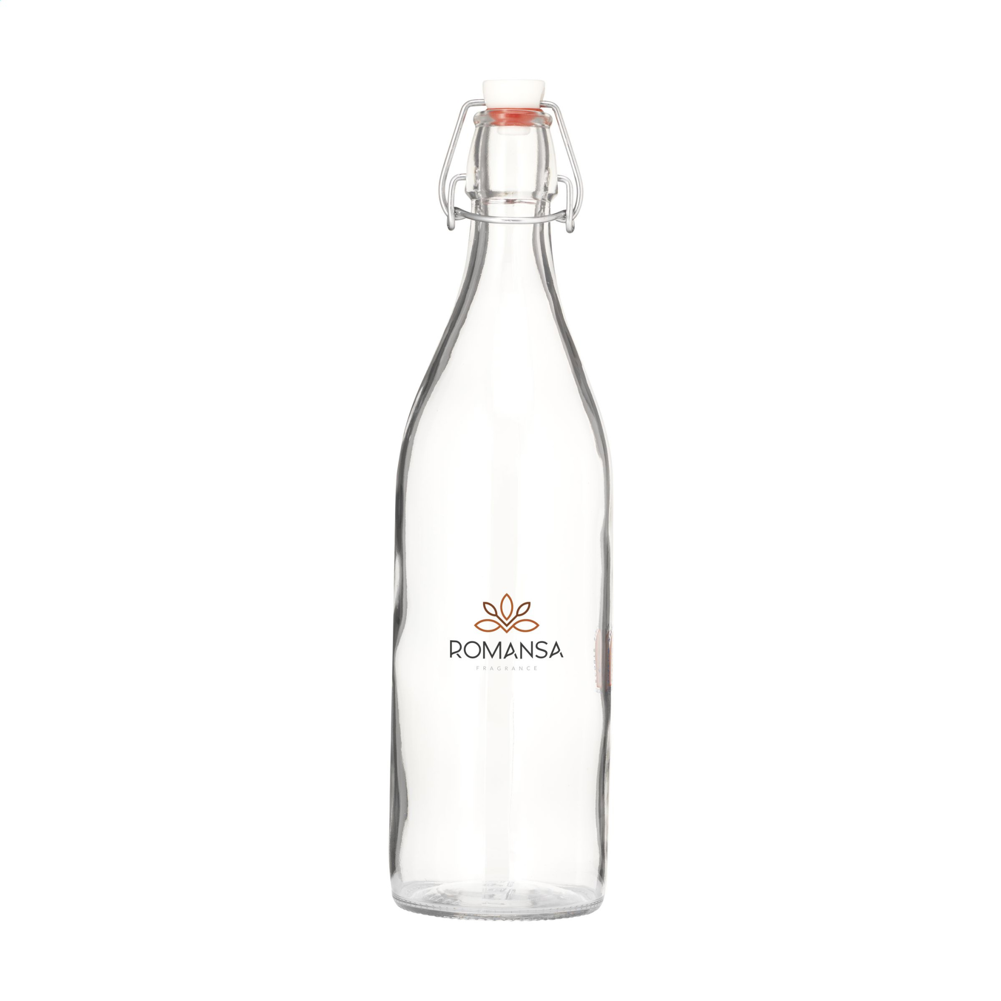 Monikäyttöinen, uudelleenkäytettävä pullo, joka on valmistettu kirkkaasta laadukkaasta lasista. Voidaan sulkea kätevällä klipsikorkilla. Tämä pullo sopii erinomaisesti veden, virvoitusjuomien tai viinin tarjoiluun. Voidaan täyttää myös oliiviöljyllä, yrteillä tai siemenillä. Sopii erinomaisesti jokapäiväiseen käyttöön tai ravintola-alaan. Tilavuus 1000 ml. Valmistettu Italiassa.