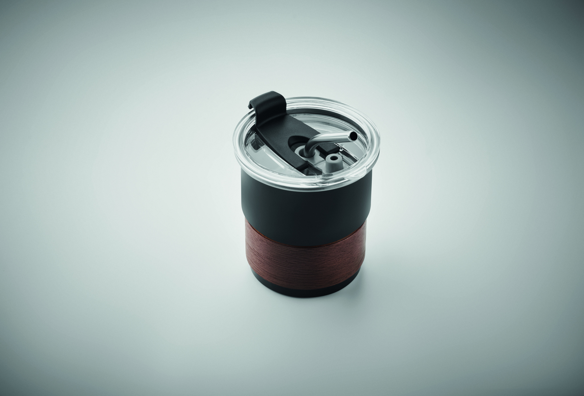 Yksiseinäinen akaasiapuusta termosmuki kierrätetystä ruostumattomasta teräksestä (90% kierrätettyä ruostumatonta terästä ja 10% ruostumatonta terästä) irrotettavalla kahvalla. Tilavuus: 260 ml.