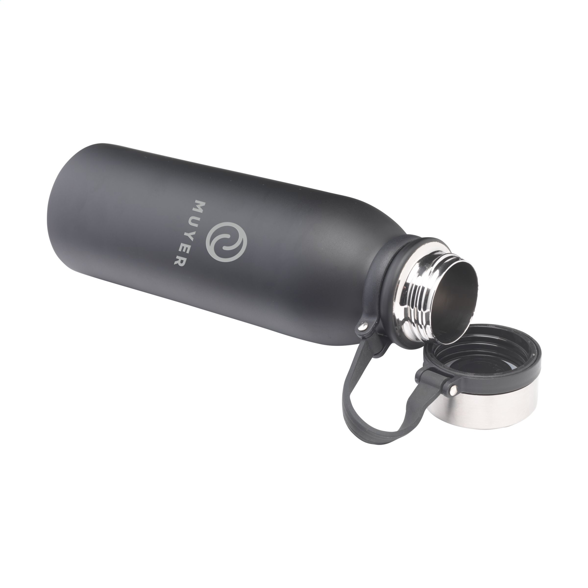 Kaksiseinäinen, tyhjiöeristetty, vuotamaton ruostumattomasta teräksestä valmistettu vesipullo/termopullo. Kierrekorkki on kiinnitetty pyörivään silikonista kantohihnaan ja pysyy kiinni, kun pullo on auki, joten sinulla on aina yksi käsi vapaana. Soveltuu kylmien tai kuumien juomien lämpötilan ylläpitämiseen. Tilavuus 600 ml. Jokainen tuote on pakattu erikseen.