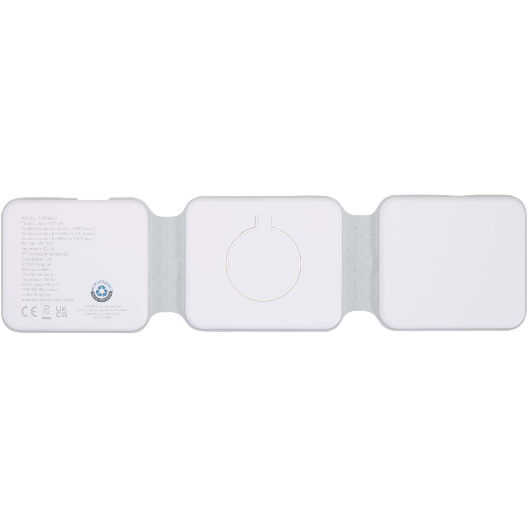 „Armus 3-in-1“ 15 W perdirbto plastiko sulankstomas belaidis įkroviklis, Balta