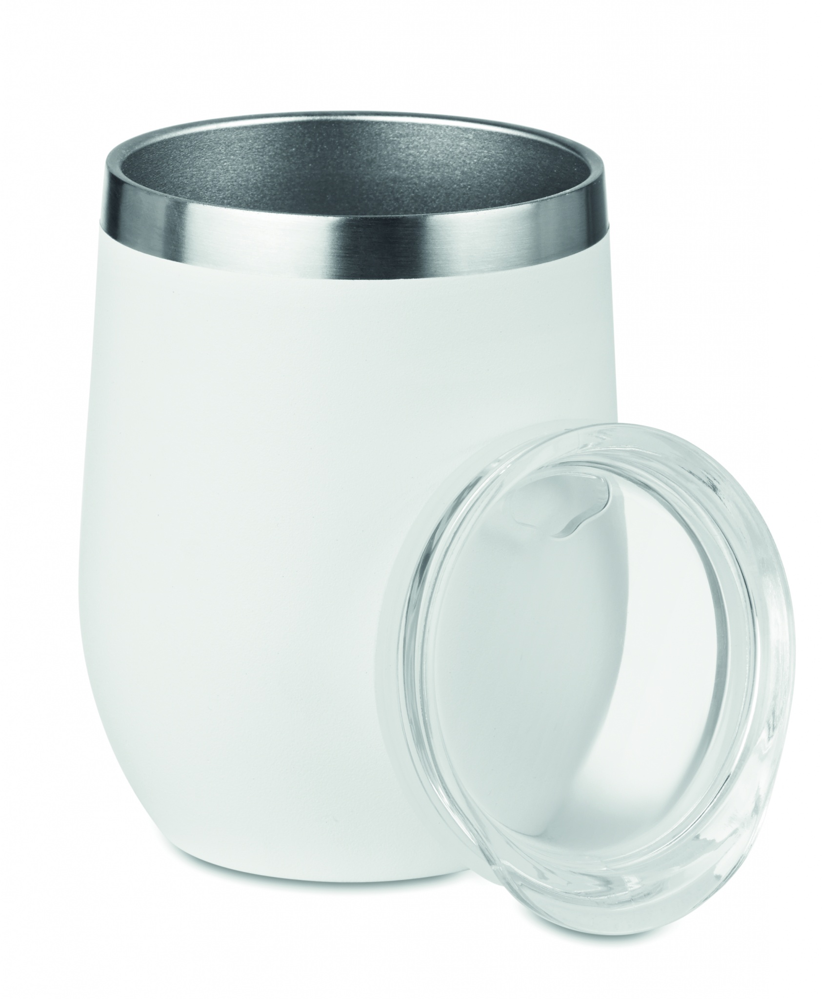 300 ml milteliniu būdu dengtas dvigubas nerūdijančio plieno 304 18/8 puodelis, taip pat gali būti naudojamas kaip vyno taurė.