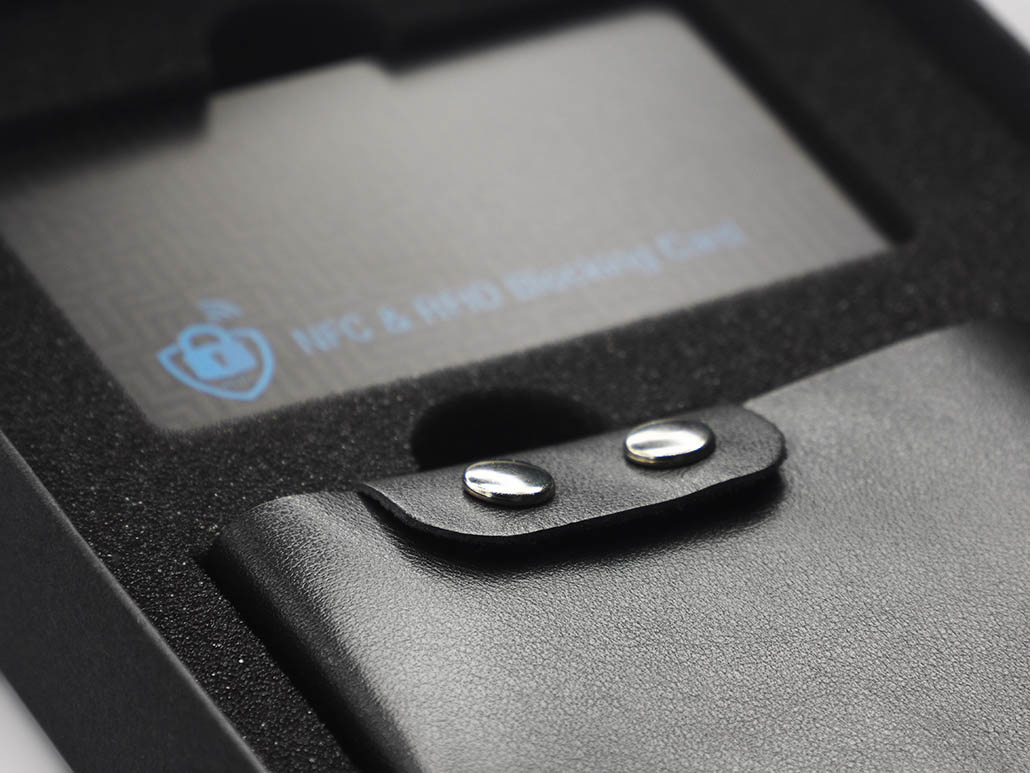 Į komplektą įeina NFC ir RFID signalų blokavimo kortelė