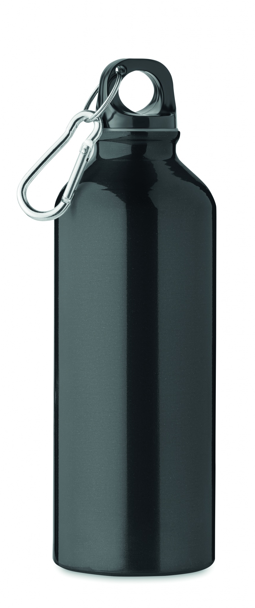 Viengubo sienelės 500 ml vandens butelis, pagamintas iš perdirbto aliuminio, su karabinu, Juoda