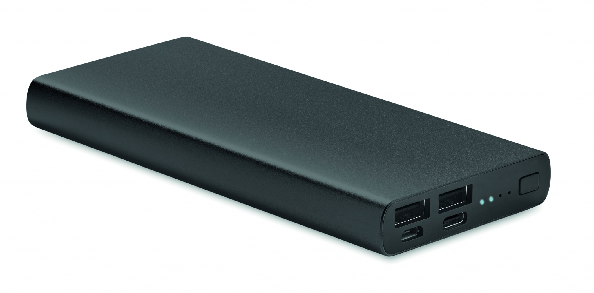 Jaudas banka 10000 mAh no alumīnija. Jauda viedtālruņa lietošanai, izejas strāva DC5V/1A un DC5V/2A. Iekļauts indikators un USB kabelis ar mikro usb spraudni. Atbalsta ātrās uzlādes tehnoloģiju (18W). Ieeja/izeja: C tips. Barošanas piegādes (PD) atbalsts, lai uzlādētu jaunāko klēpjdatoru MacPro®.