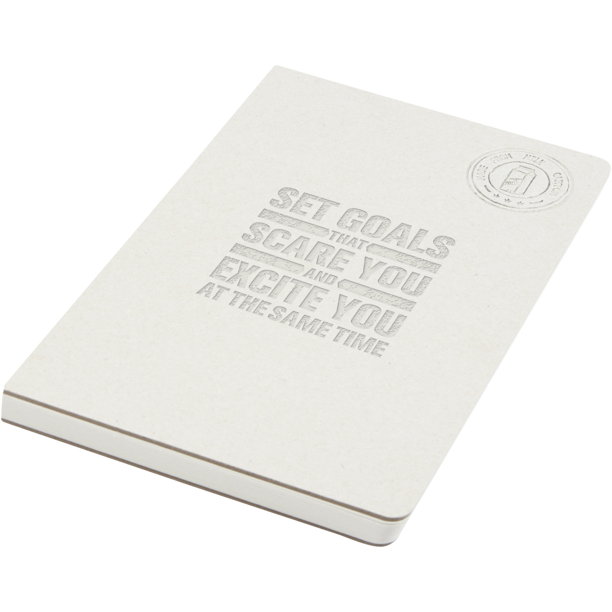A5 izmēra atsauces bezmugurkaula piezīmju grāmatiņa ar 80 80 g/m² oderētām loksnēm, kas izgatavotas no pārstrādātām piena kastēm (līdz 70%). Izlietotās piena pakas tiek savāktas, šķirotas, apstrādātas un pārvērstas par papīru, patiesi pārvēršot atkritumus par kaut ko noderīgu.