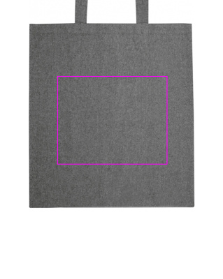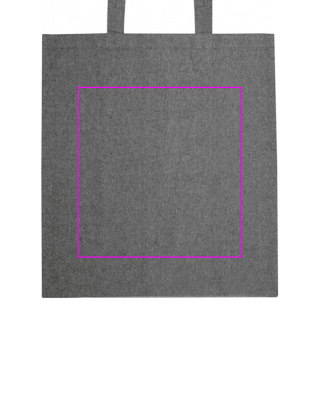 Pārstrādāta Eco Tex Standard 100 kokvilnas soma ar gariem rokturiem (140g/m²). Jūsu logotips tiks uzdrukāts vienā somas pusē.