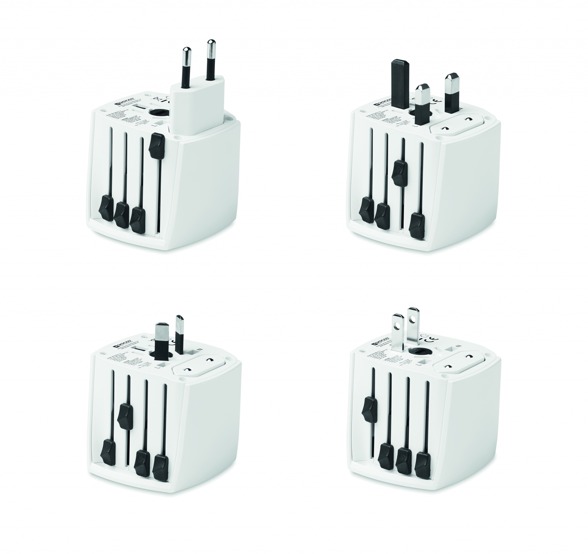 Universāls SKROSS® ceļojumu adapteris. Tvertnes Eiropai, ASV/Japānai, Austrālijai/Ķīnai.   2-polu, atzemēts. Atbilst visiem starptautiskajiem ar drošību saistītos standartus un normas. Pat bērnam droši.