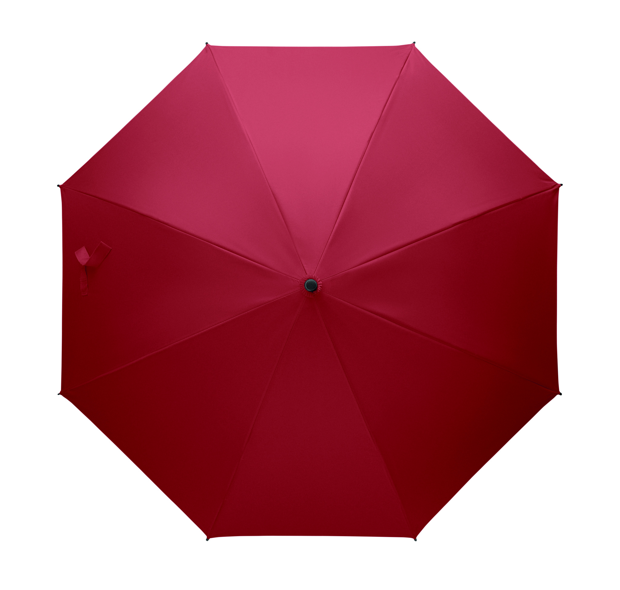 23 inch straight auto open windproof umbrella with full fibreglass frame and panels in 190T pongee fabric. Plastic tips and top. Rubberized PP plastic curved handle. Manual closure.