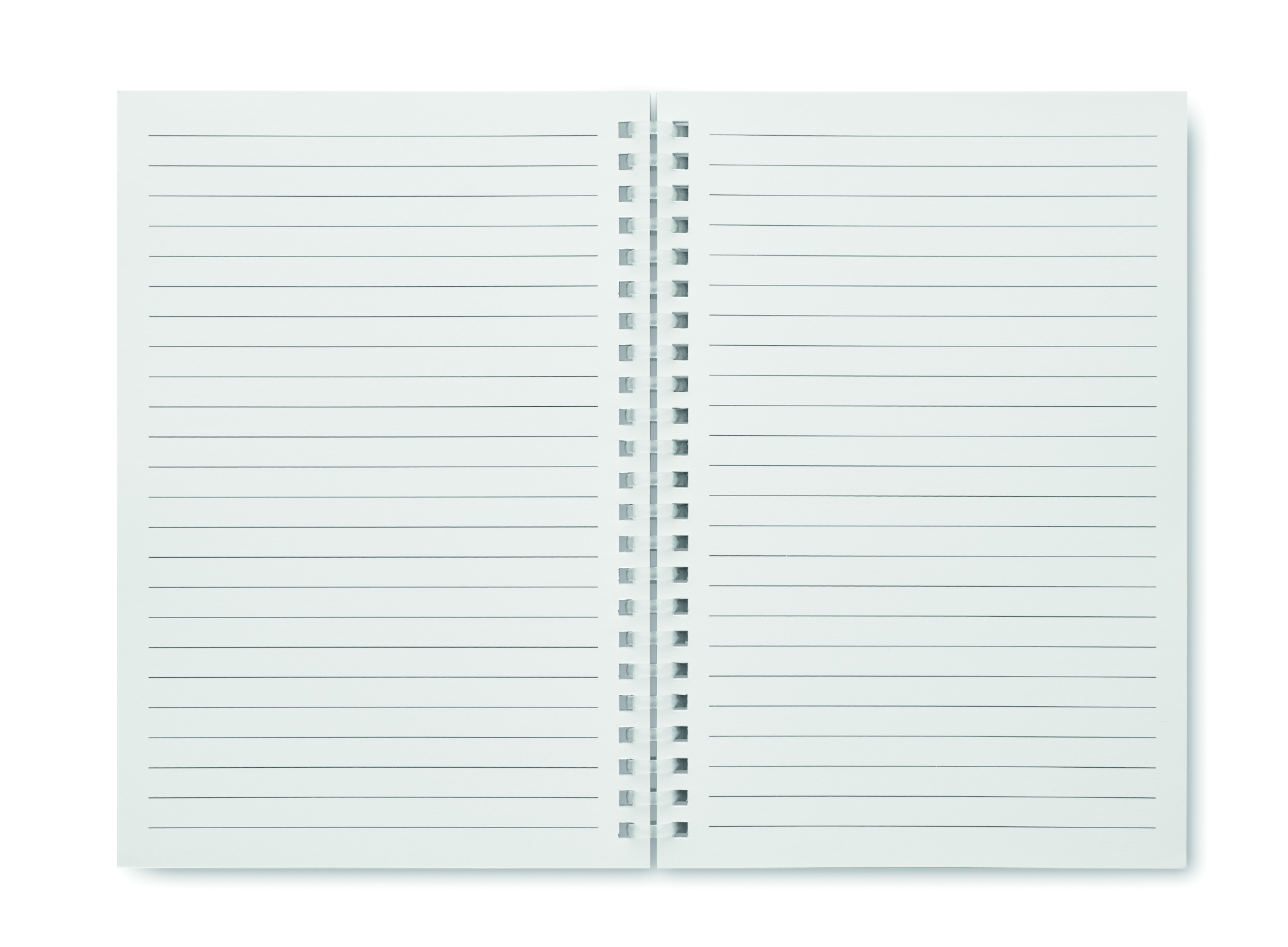 A5 Recycled carton cover soft ring binding notebook. 160 recycled lined paper pages (80 sheets).
