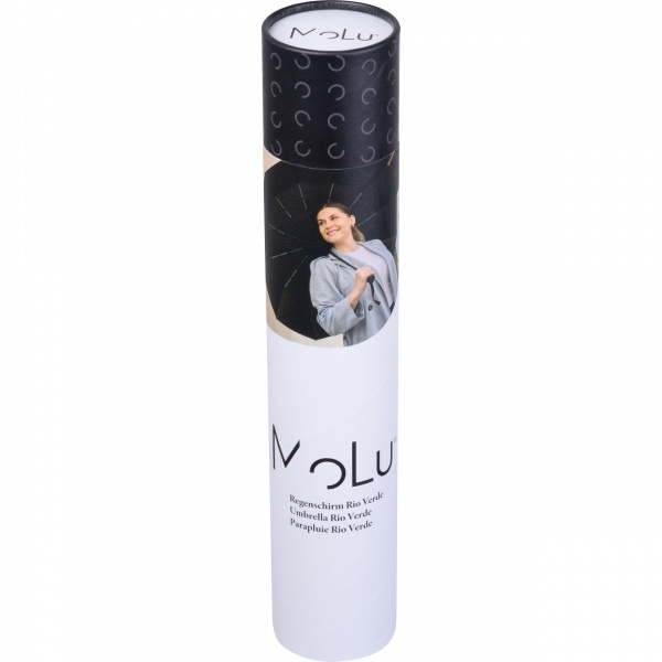 Когда зонт делает больше, чем просто защищает от непогоды. Зонт Molu — это настоящее заявление: он представлен в премиальной круглой коробке, которая с первого взгляда даёт понять: всё дело в качестве. Он оснащён стекловолоконной рамой, выдерживающей ветер скоростью до 180 км/ч. Купол из хлопка плотностью 260 г/м² не только защищает от солнца и не пропускает свет, но и выглядит таким же прочным, как и выглядит. Ручка изготовлена из переработанного АБС-пластика — для тех, кто сочетает стиль с ответственностью. Долговечность, дизайн и функциональность в идеальной гармонии. Ваш логотип точно и профессионально нанесён методом трафаретной печати на одну панель — сдержанный, но эффектный.