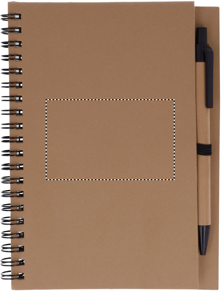 Блокнот с картонной обложкой. Включает 70 страниц вторично переработанной бумаги и синюю шариковую ручку из биопластика.