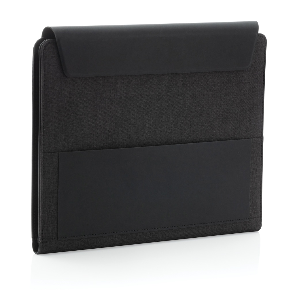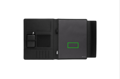 Красивый и практичный: этот портфель формата А4 предлагает возможность беспроводной зарядки, чтобы вы всегда были на связи. Входящий в комплект внешний внешний аккумулятор можно использовать и отдельно. Элегантный портфель оснащен встроенной беспроводной зарядной подставкой для телефона, эластичной петлей для ручки, 3 отделениями для визиток и дополнительными карманами. В блокнот входит 20 листов линованной бумаги кремового цвета плотностью 80 г/м². Изготовлен из смеси полиэстера и полиуретана. Вход: 5 В/2 А; Выход: 5 В/2 А. Беспроводной вход 5 В/2 А, выход 5 В/1 А. Поставляется в полноцветной подарочной коробке.