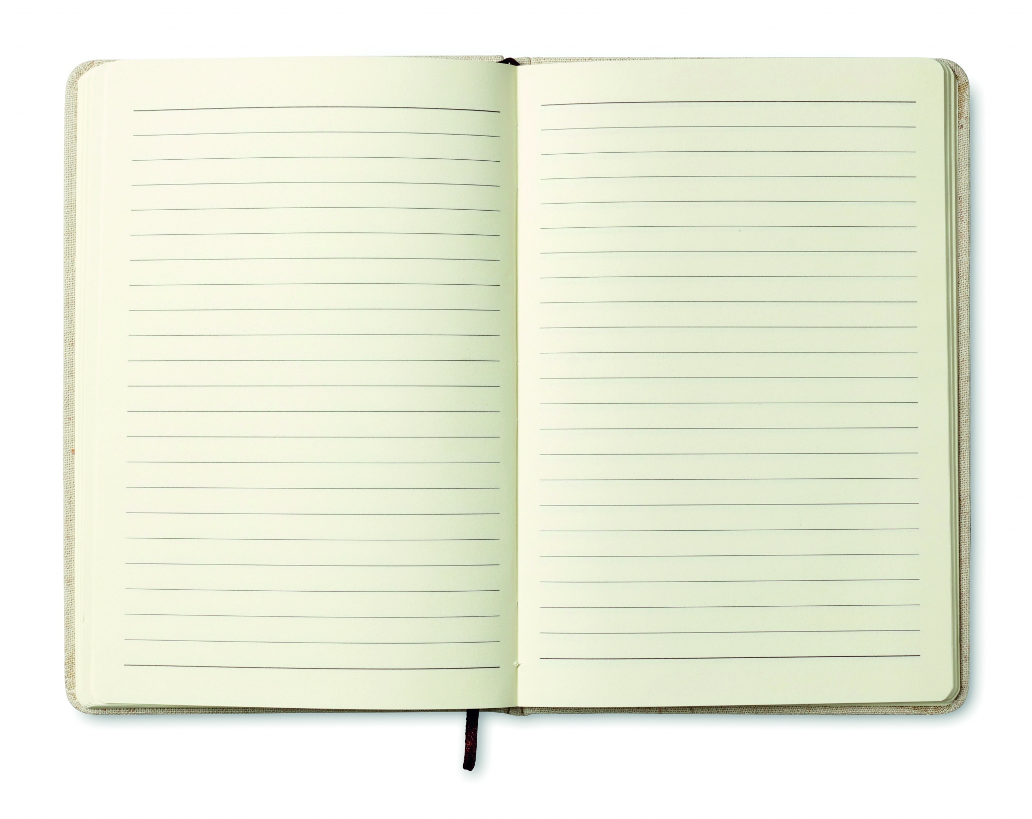 Блокнот формата А5 с обложкой из парусины на резинке, 96 линованых листов.
