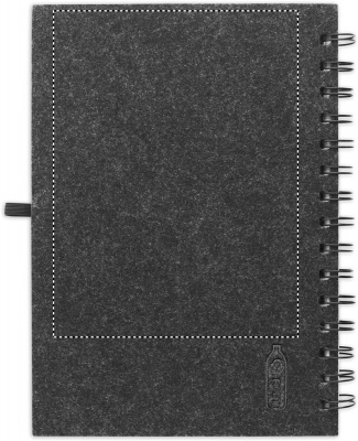 Блокнот A5 RPET в фетровой обложке. Двухсторонний переплет, 160 линованных страниц из вторичного сырья плотностью 70 гр/м² (80 листов) с эластичным держателем для ручки.