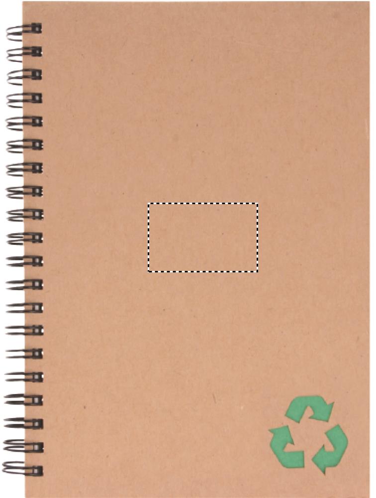 Блокнот на кольцах на 70 листов. Обложка из переработанного картона. Блок бумаги- это каменная бумага. Изготовлена из смеси натурального камня, карбоната кальция, известняка и полиэтилена высокой плотности.