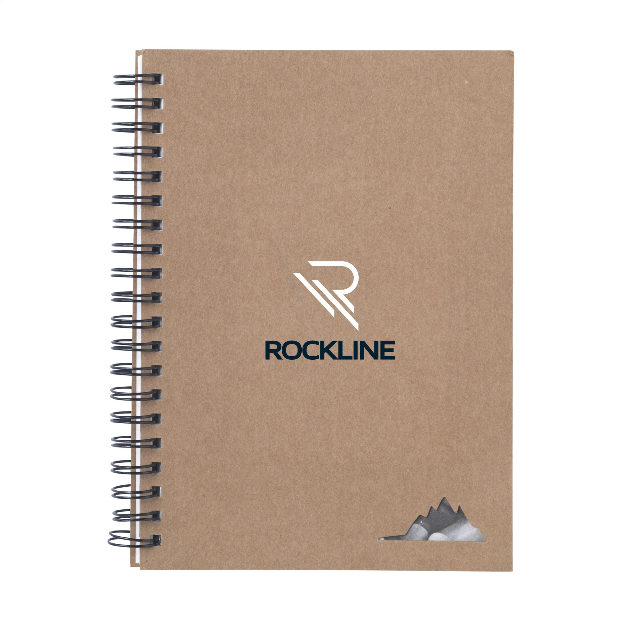 WoW! Блокнот с обложкой из переработанного картона. С 70 линованными листами/140 линованными страницами (120 г/м²) из натурального камня: 80% карбоната кальция и 20% пластика HDPE. Бумага антибактериальная, водонепроницаемая, устойчива к разрывам и пятнам. С металлическим переплетом.