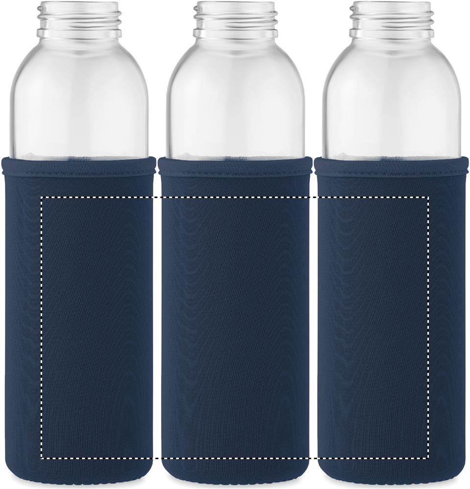Бутылка из переработанного стекла с неопреновым чехлом и полипропиленовой крышкой с силиконовым держателем. Герметична. Емкость: 500 мл.