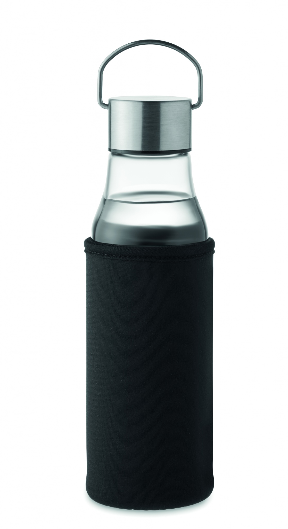 Стеклянная бутылка с крышкой и ручкой из нержавеющей стали. Герметична. Емкость: 500 мл.