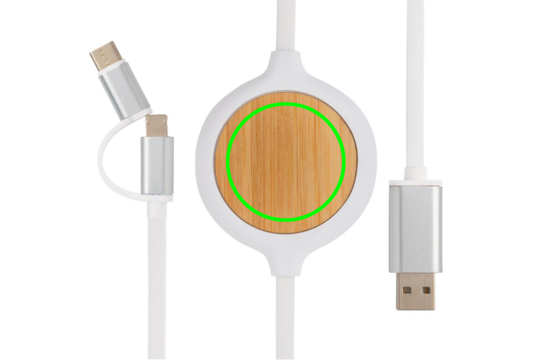 Кабель 3-в-1 с бамбуковым беспроводным зарядным устройством мощностью 5 Вт, белый