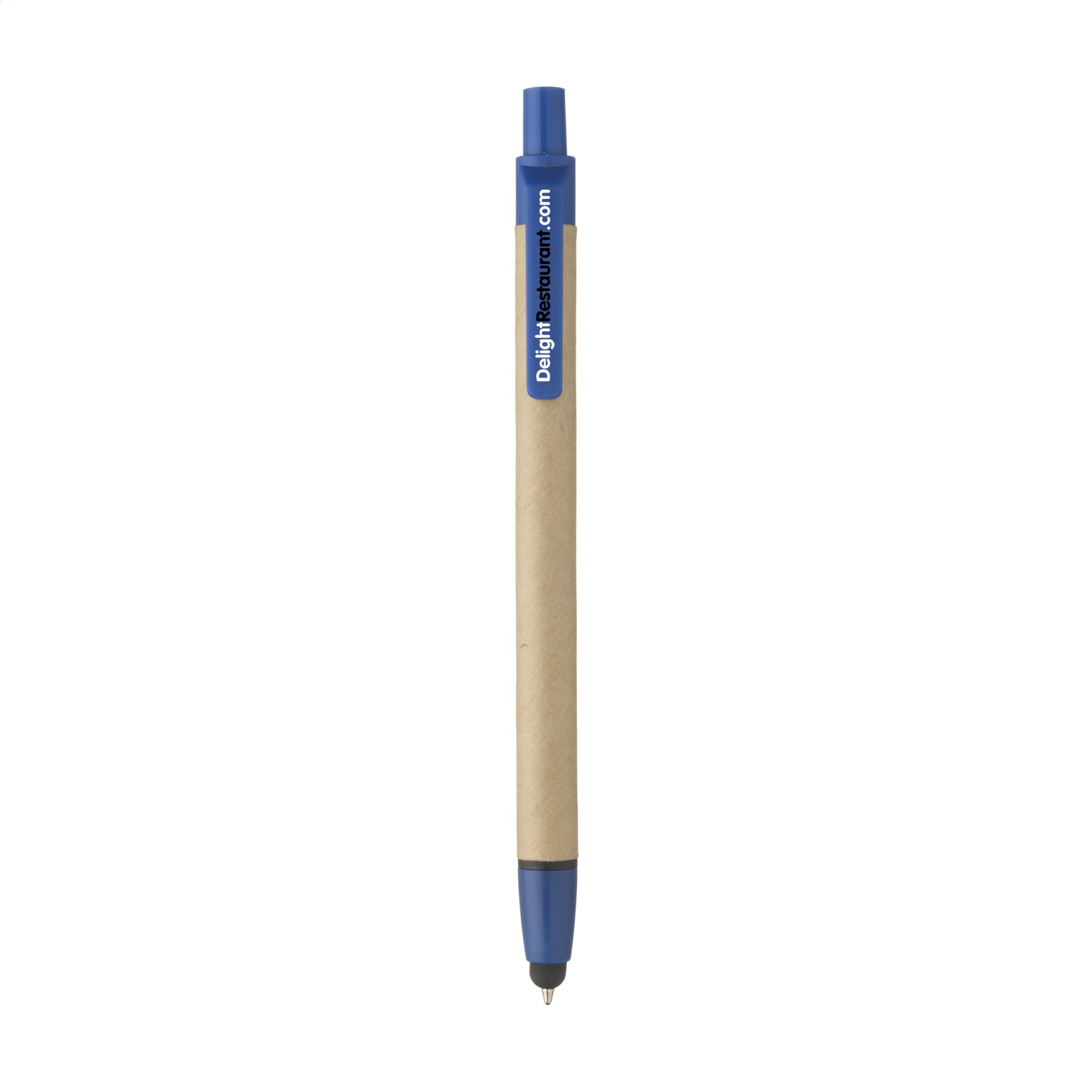 WoW! Шариковая ручка с синими чернилами, корпусом из переработанного картона, резиновой стрелкой для управления сенсорными экранами и пластиковыми вставками.