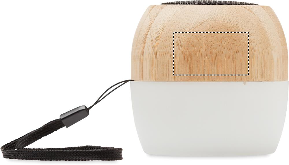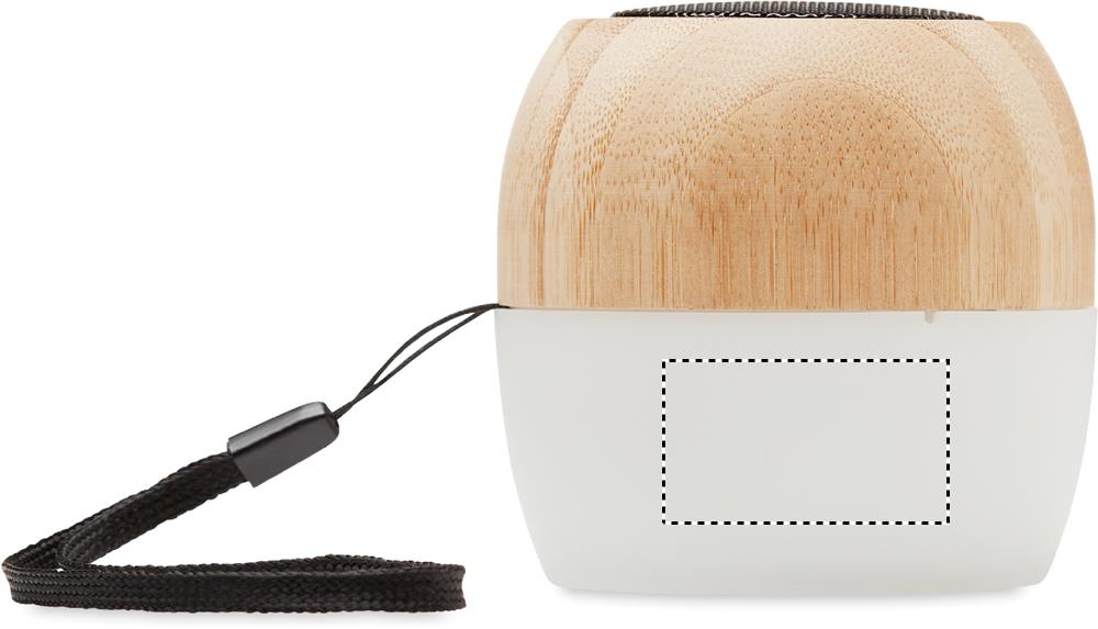 Беспроводная колонка 5.0 из бамбука и полипропилена с меняющейся подсветкой и ремешком для переноски. Аккумулятор Li-POL 300 мАч. Выходные данные: 3 Вт, 4 Ом. Время воспроизведения около 2 ч.