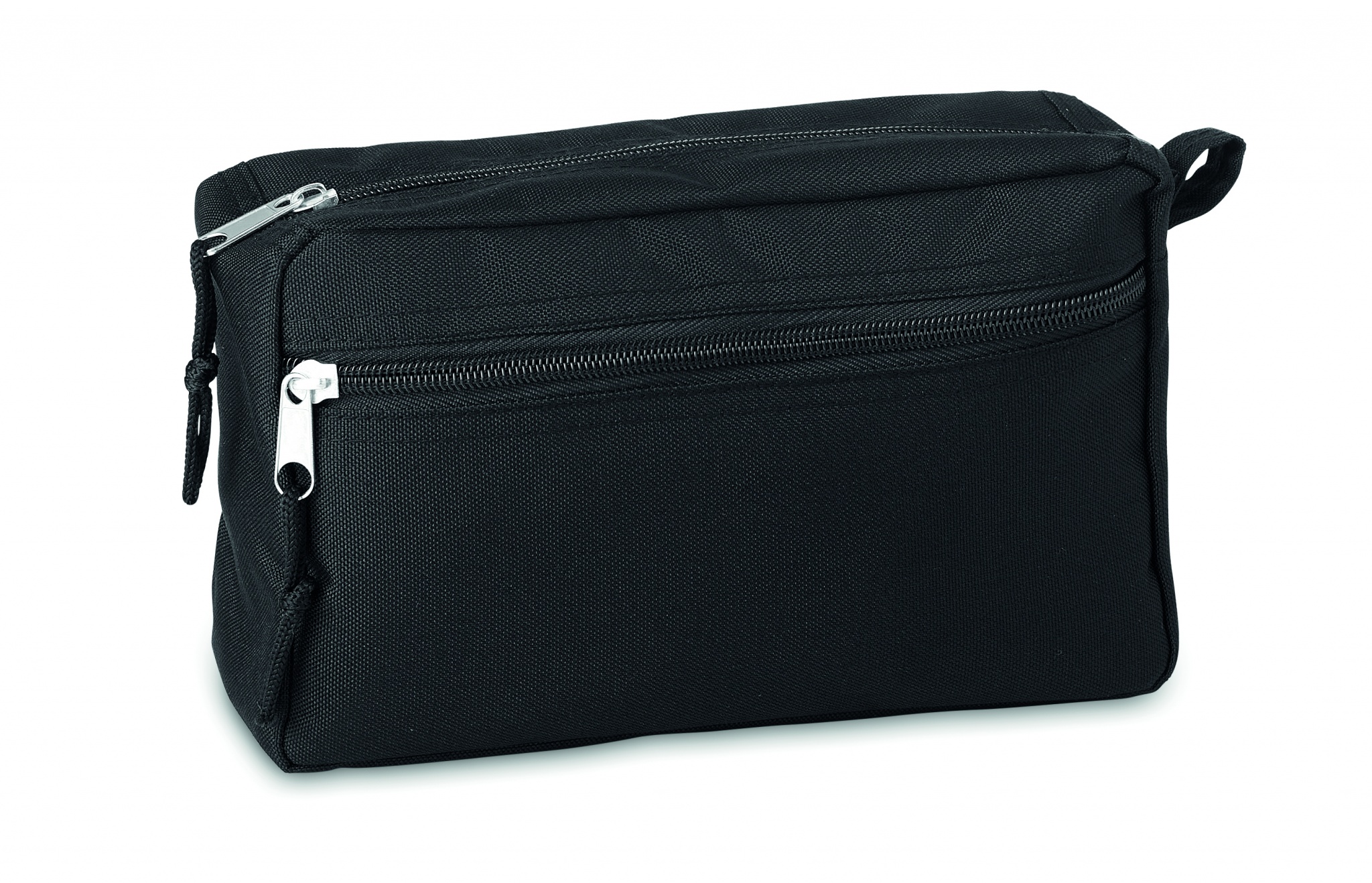 Косметичка с двойной молнией из 600D RPET с полиуретановой подкладкой.