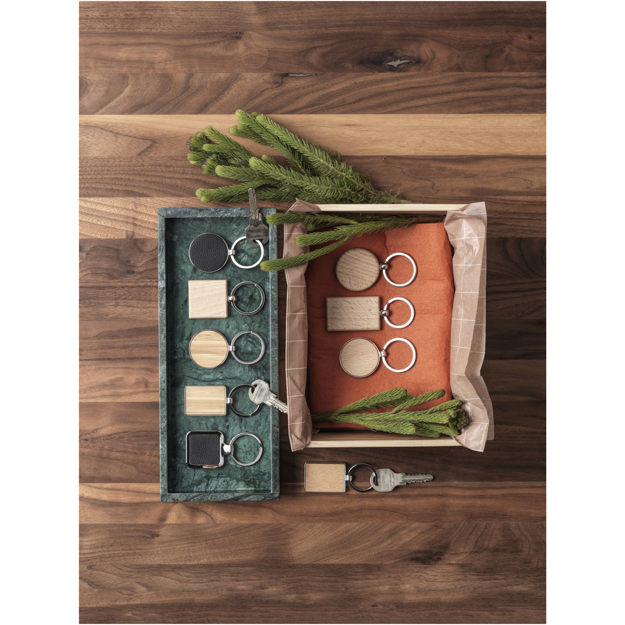 Круглый брелок премиум-качества из буковой древесины с металлическим корпусом из цинкового сплава. Поставляется в коричневой упаковке из шрифтовой бумаги. Диаметр брелка составляет 4 см. Пригодный для гравировки.