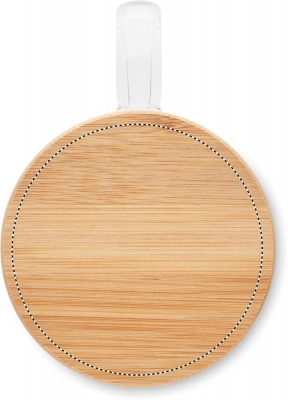 Кружка из боросиликатного стекла с двойными стенками, ручкой и бамбуковой крышкой. Объем: 300 мл.