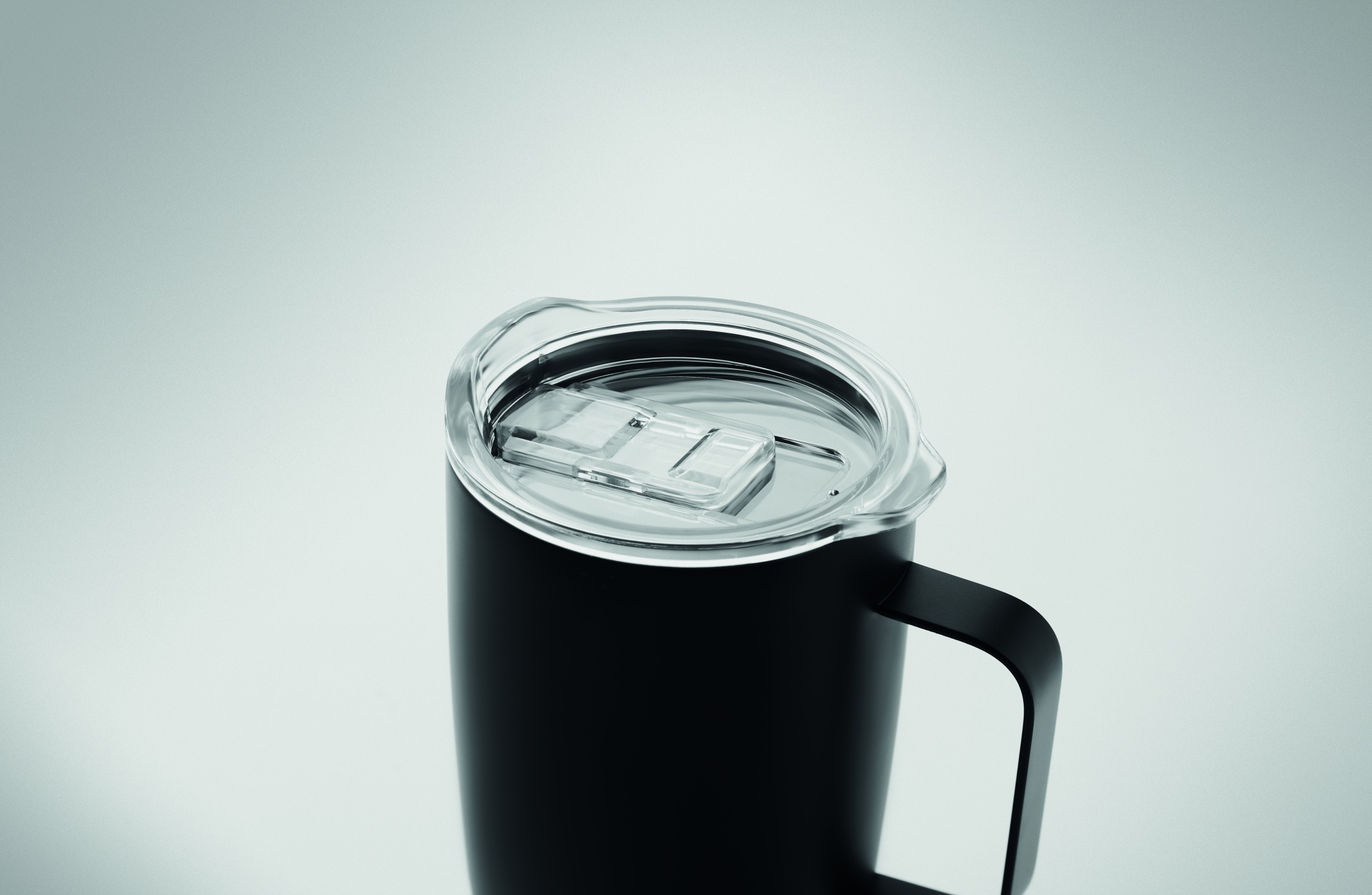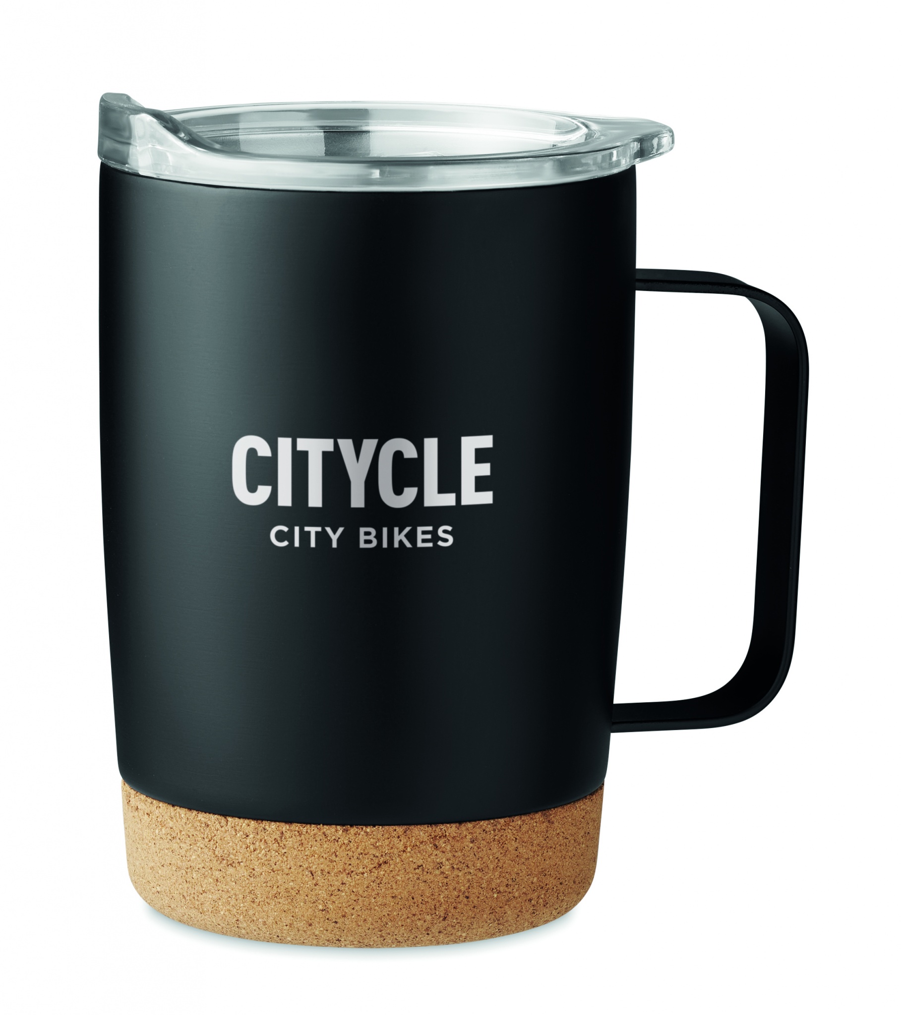 Кружка из нержавеющей стали с двойными стенками, пробковым дном и крышкой с отверстием для питья. Емкость: 300 мл.