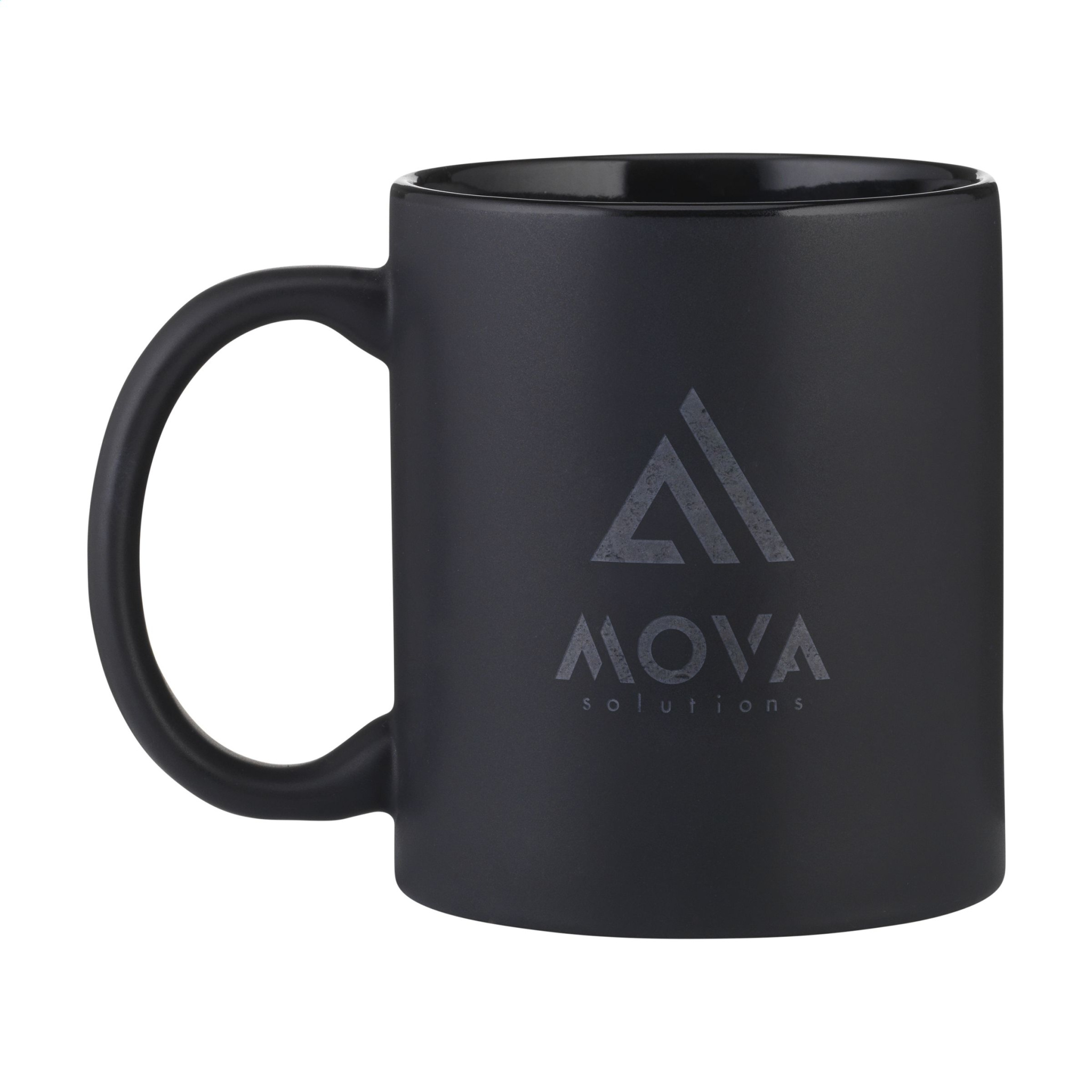 Высококачественная керамическая кружка с матово-черной внешней поверхностью и глянцево-черной внутренней поверхностью. Можно мыть в посудомоечной машине. Печать протестирована и сертифицирована в посудомоечной машине: EN 12875-2. Емкость 350 мл.