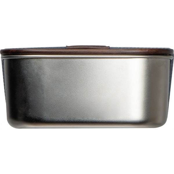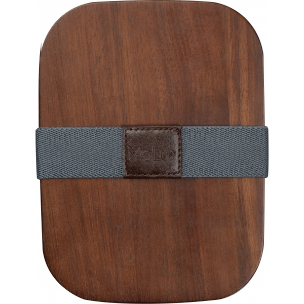 Ланч-бокс из переработанной нержавеющей стали, с крышкой из акации и эластичной лентой. Емкость 1000 мл.