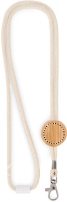 Ланьярд из хлопка с круглой бамбуковой вставкой и металлическим креплением. Длина: 50 см.