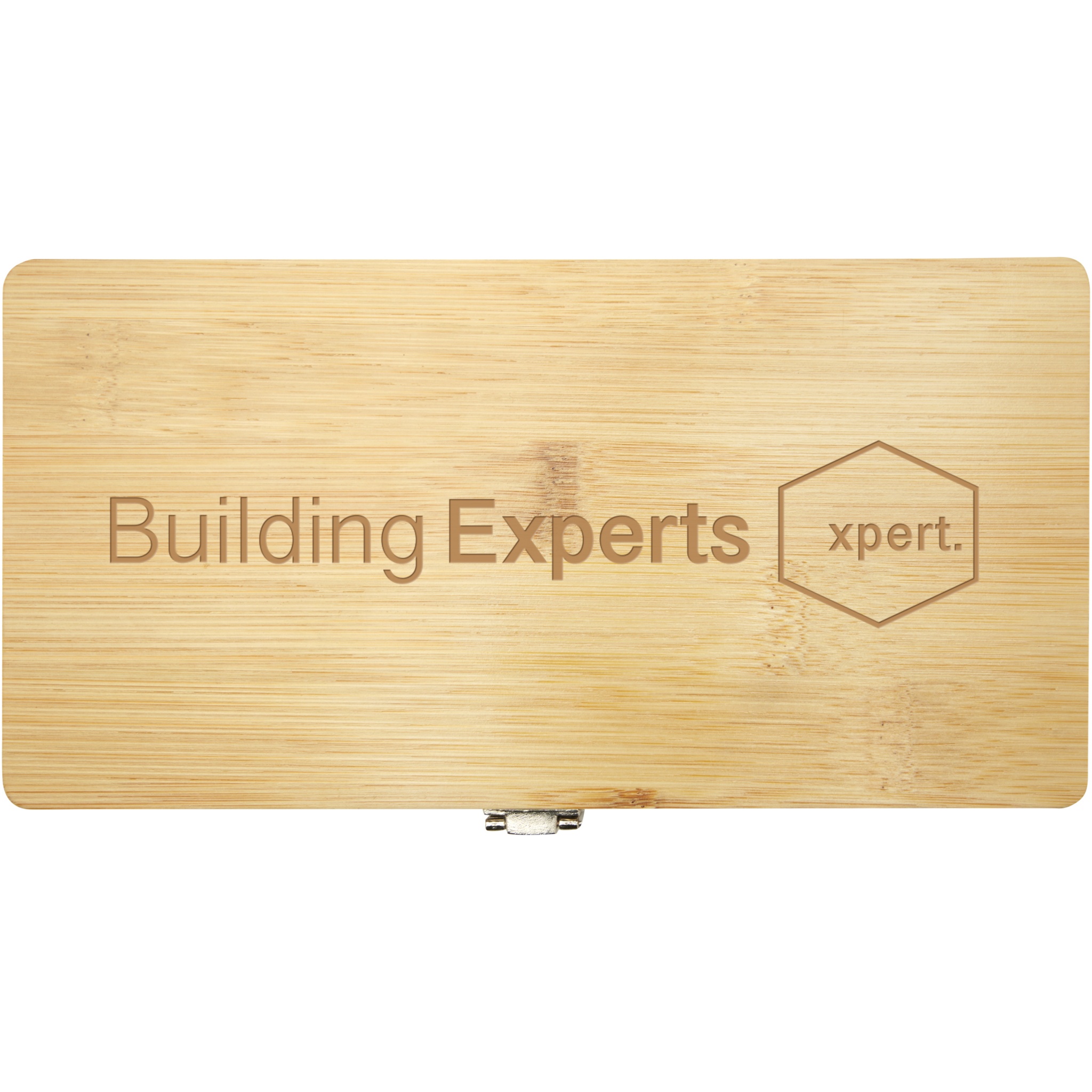 Ощутите идеальное сочетание экологичности и функциональности с набором инструментов Rivet. Этот тщательно разработанный набор инструментов не только привлекателен визуально, но и экологически безопасен без ущерба для качества и производительности. Природная прочность и долговечность бамбука гарантируют защиту ваших инструментов на долгие годы. Внутри кейса вы найдете набор из 19 необходимых инструментов, изготовленных из углеродистой стали и переработанной пластмассы: 1 длинная шарнирная ручка, 4 высококачественные насадки для различных целей, 1 удлинитель для труднодоступных мест, 10 прецизионных бит отверток для любых задач и 3 шестигранных ключа для сборки мебели. Независимо от того, являетесь ли вы любителем делать что-то своими руками или профессиональным мастером, эти инструменты рассчитаны на надежную работу и выдерживают суровые условия эксплуатации. Поскольку бамбук — природный материал, цвет и размер сырья могут быть разными, что, в свою очередь, может повлиять на итоговый вид печати. Упаковано в подарочную коробку STAC из экологически чистых источников.