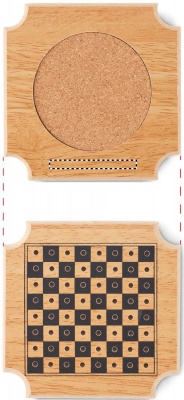 Набор из 4 подставок под горячее из пробки и МДФ. Одновременно это является набором из 4 игр: крестики-нолики, нарды, шахматы и китайские шашки.