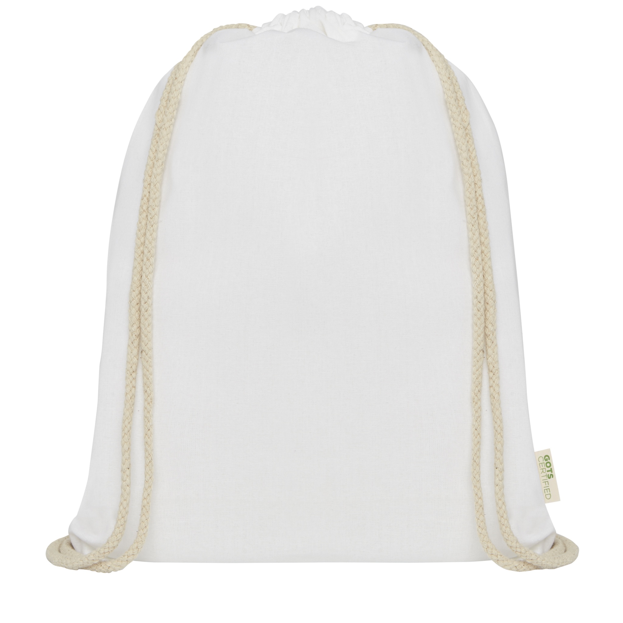 Orissa 140 g/m² organic cotton drawstring bag 5L, Белый