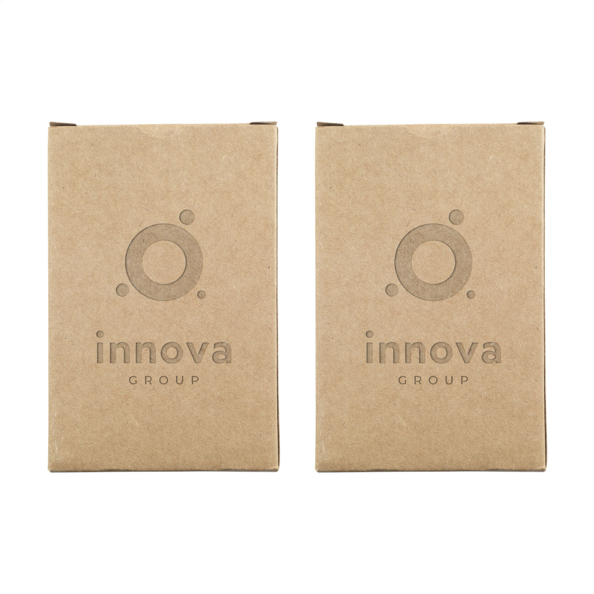 WoW! Две колоды игральных карт, изготовленные из высококачественной переработанной крафт-бумаги (250 г/м²). Эта игра состоит из 52 игральных карт и 2 джокеров. Хранится в коробке из переработанного картона. На обороте всех этих карт одно и то же стандартное изображение. Эти колоды карт поставляются в коробке для хранения из сосны с выдвижной крышкой.