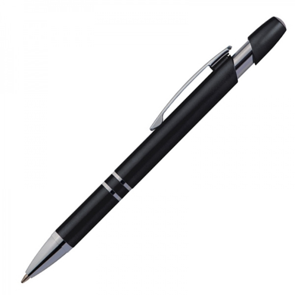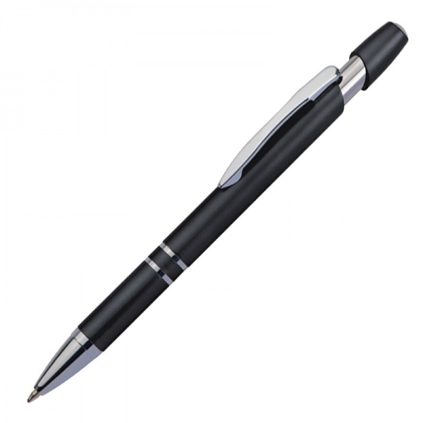 Пластиковая шариковая ручка с металлическим видом, с большим объемом стержня и функцией нажатия. Мы напечатаем ваш логотип под зажимом.