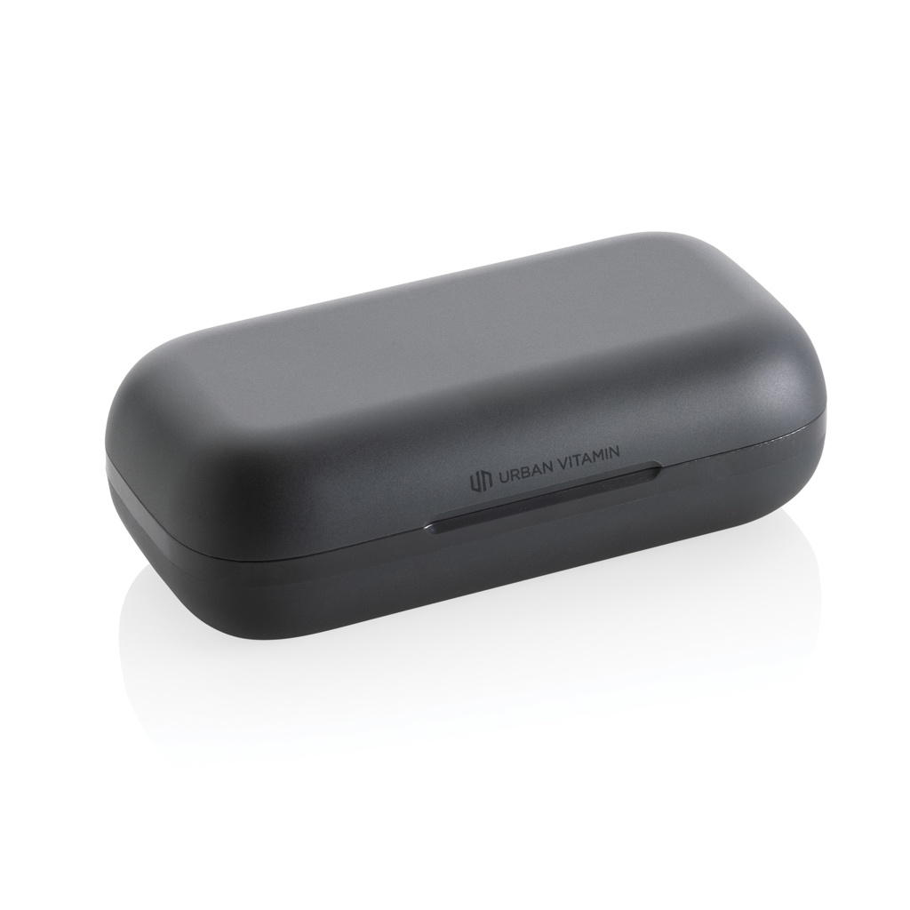 Превзойдите себя и выведите свою физическую форму на новый уровень с этими идеальными наушниками для тренировок. Настраиваемые, идеально подходящие заушные крючки регулируются с несколькими вариантами ушных вкладышей для дополнительного комфорта и остаются на месте, независимо от интенсивности тренировки. Эти легкие наушники созданы для максимальной производительности с прочной конструкцией с защитой от пота, пыли и воды IPX5. Благодаря до 8 часам прослушивания благодаря усовершенствованному Bluetooth 5.3 в каждом наушнике и мощному сбалансированному звуку у вас всегда будет ваша музыка, которая будет вас мотивировать. Наушники и зарядный чехол на 600 мАч изготовлены из переработанного ABS/TPE, сертифицированного по стандарту RCS (Recycled Claim Standard). Общее содержание переработанных материалов: 55 % от общего веса изделия. Сертификация RCS гарантирует полностью сертифицированную цепочку поставок переработанных материалов. Наушники можно полностью перезарядить 3 раза в зарядном чехле. Изделия Urban Vitamin изготавливаются без ПВХ и упаковываются в упаковку с уменьшенным содержанием пластика.
