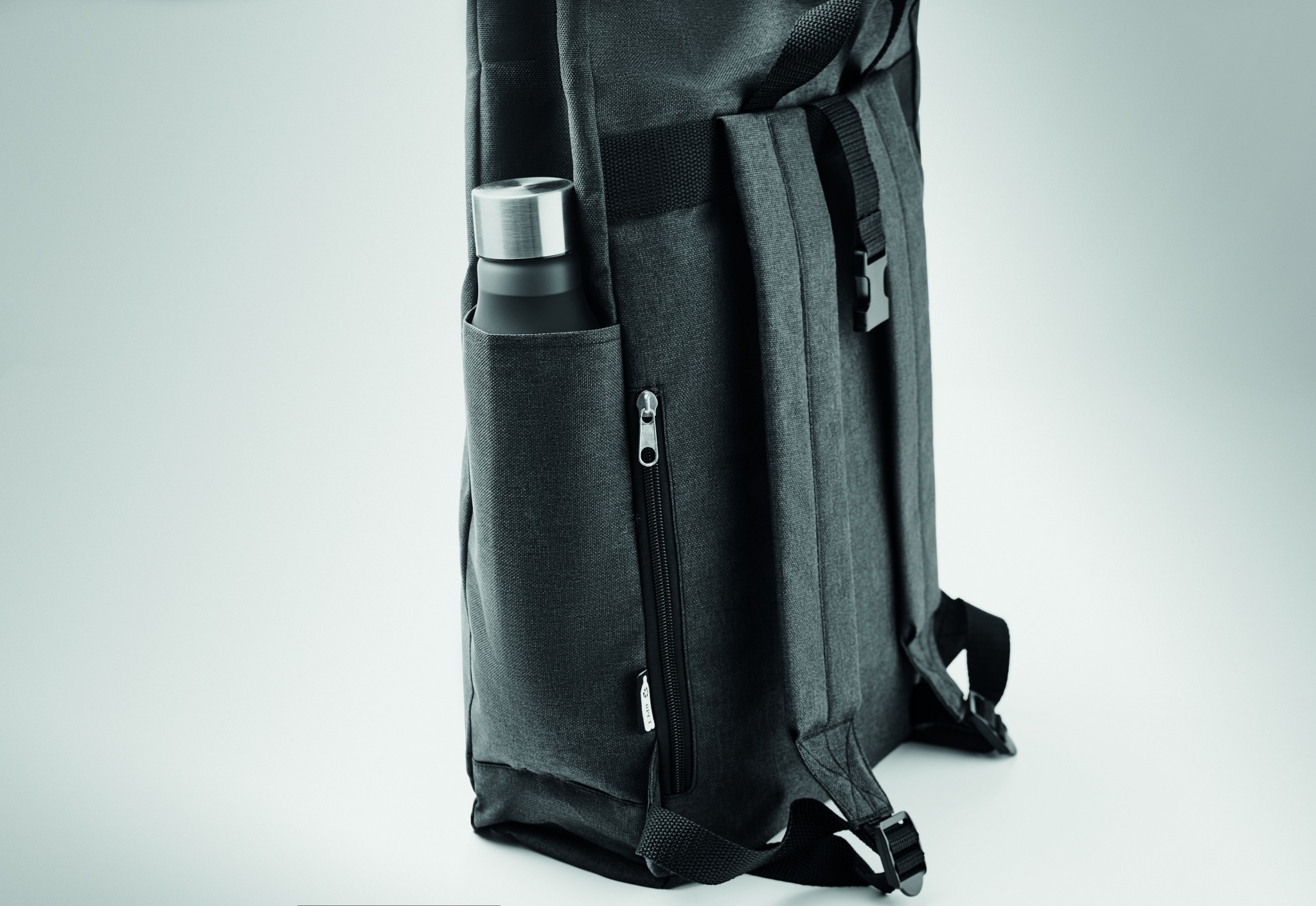 Рюкзак из двухцветного полиэстера 600D RPET с застежкой зажимом на липучке.