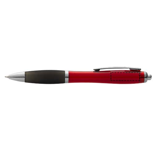 Шариковая ручка с кнопочным механизмом и мягким держателем.