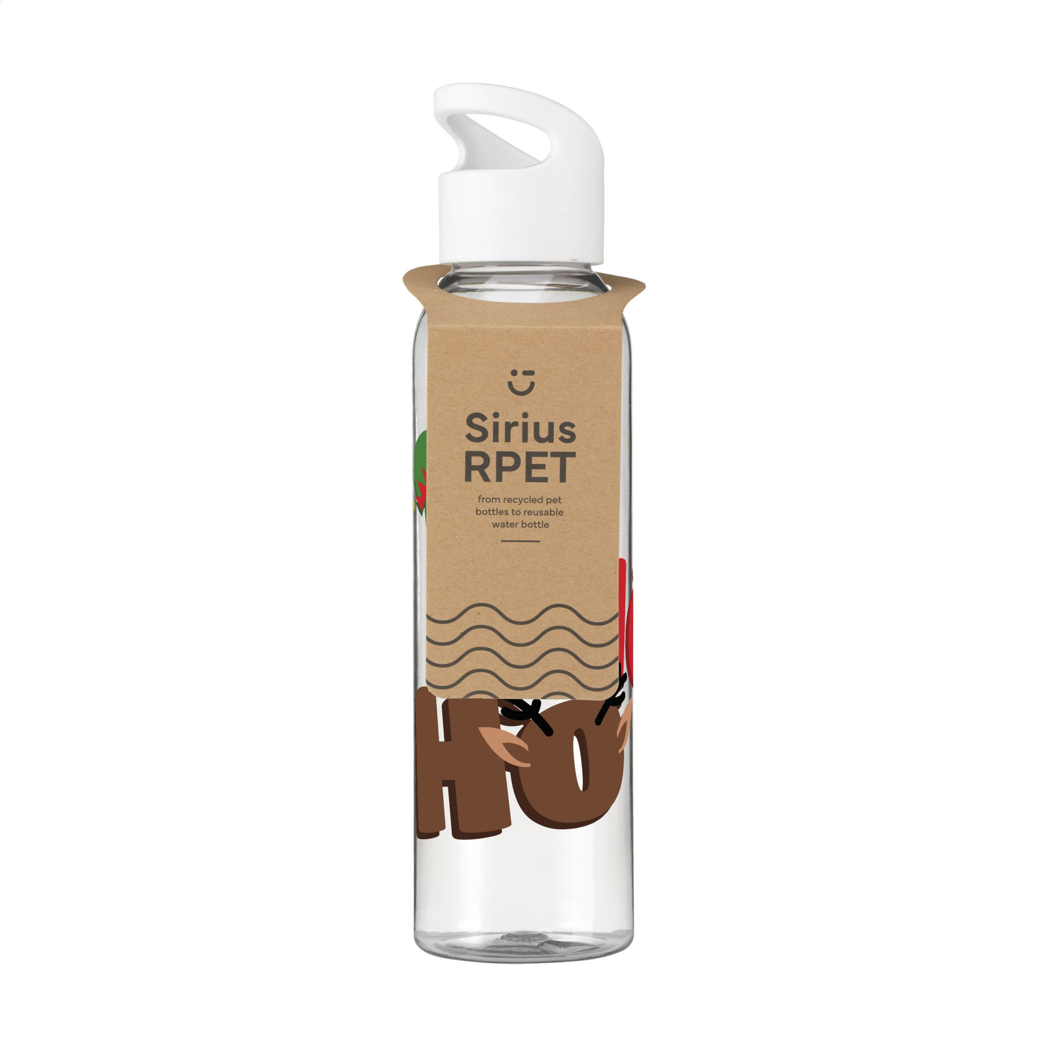 WoW! Роскошная бутылка для воды из прозрачного RPET с напечатанным стандартным рождественским дизайном. С практичной пластиковой винтовой крышкой. Не содержит BPA, герметична и пригодна для повторного использования. Не подходит для мытья в посудомоечной машине. Емкость 650 мл. Сертификация GRS. Общее количество переработанного материала: 83%. - На этот продукт напечатан стандартный рождественский дизайн. Выбор из 6 различных дизайнов, как показано на изображениях. Невозможно настроить дизайн.